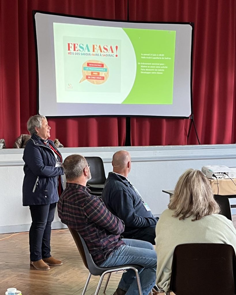 C’était également l’occasion pour Maryse Chiron-Charrier ( adjointe au développement économique de la mairie de Sadirac ) de présenter le FESA FASA - la Fête des Savoir-faire - qui s'est tenu à Sadirac le samedi 14 juin.
